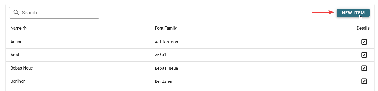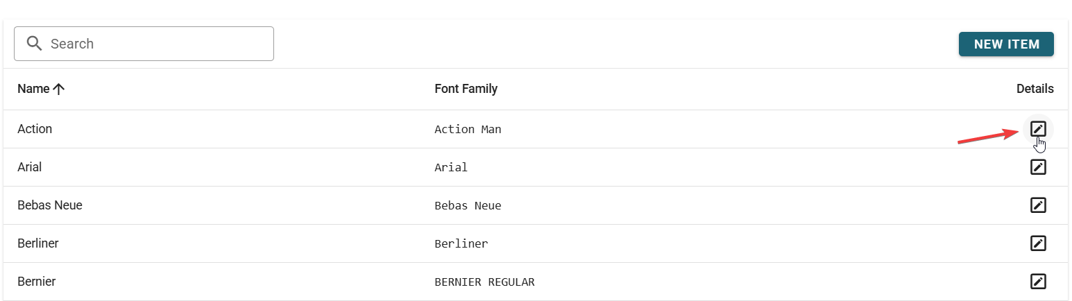 - Click on one of the listed fonts you want to edit.