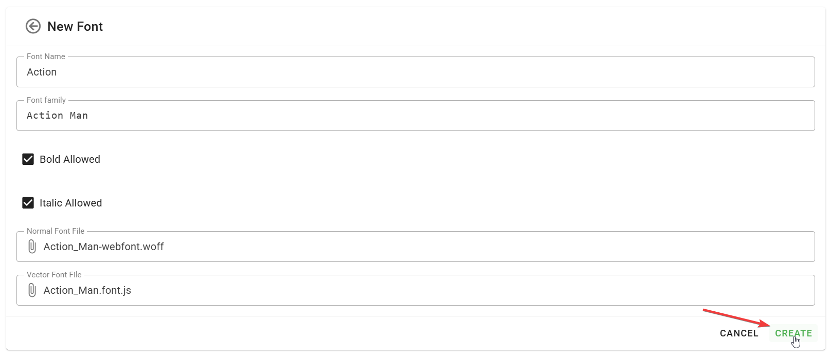 Click on the "Create" to create a new font.