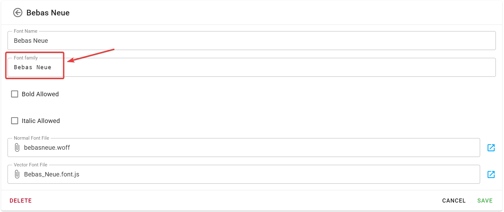 This value is required for correct work and should be the same as in your Admin Area respective Font Family field (the last step). See example:
